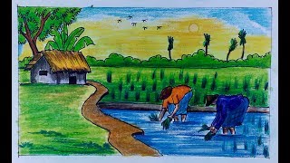 How to draw rice plantation. In this video tutorial beginner can easily learn how to draw a cultivation scenery. Drawing/panting for kids rice plantation scenery drawing / step by how to draw village /villag. I use two brand of color pencil 1.
