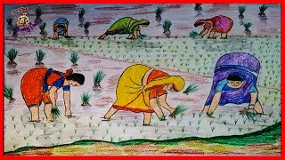 How To Draw A Scenery Of Cultivation Step By Rural Women